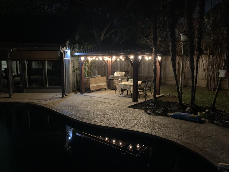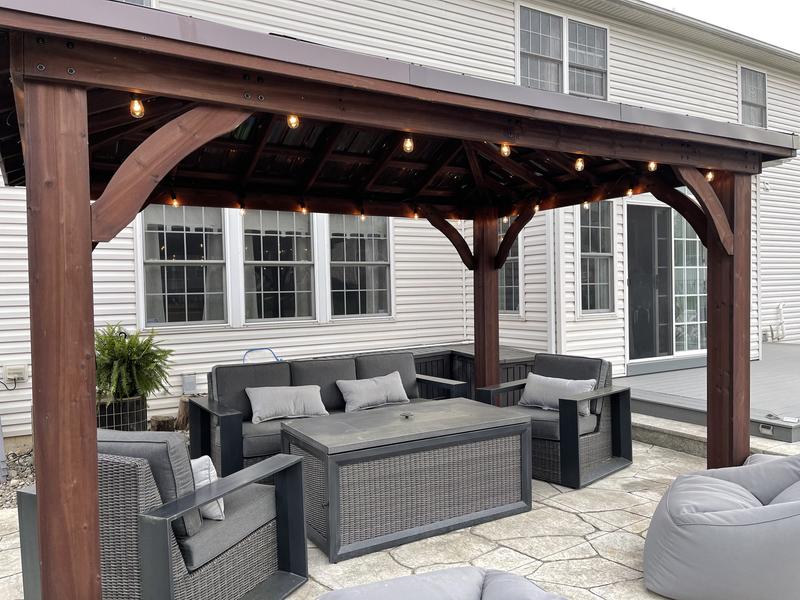 Our average customer spends around $7,600 with the average size being 12′ x 16′. Notify when back in stock. Transform your patio with the backyard discovery 14' x 10' cordova gazebo, our newest addition in outdoor structures. There were steps that were not at all clear in the directions and the video, mainly regarding the trim at the corners and the roofline. Whatever material you choose, a gazebo or pergola will look great in your garden, perhaps near a firepit. Thanks to my very handy father it got put together. Although prefabricated gazebos are easier to install and much less costly, they are not always designed to last, and will not have the same. Silverton 14 x 10 pergola with electric. Gazebo roof options include a hardtop polycarbonate roof, an aluminum roof or a canvas roof and awning. Square acuff gazebo with galvanized steel roof and frame. Enjoy the sounds and smells of a summer storm while you relax in your luxury seating set from costco. Get a free cedar pavilion quote! Hip roof pavilions & pricing our hip roof pavilions are constructed using western red cedar lumber with cedar tongue & groove siding on the ceiling and stained using transparent stain in your choice of colors.